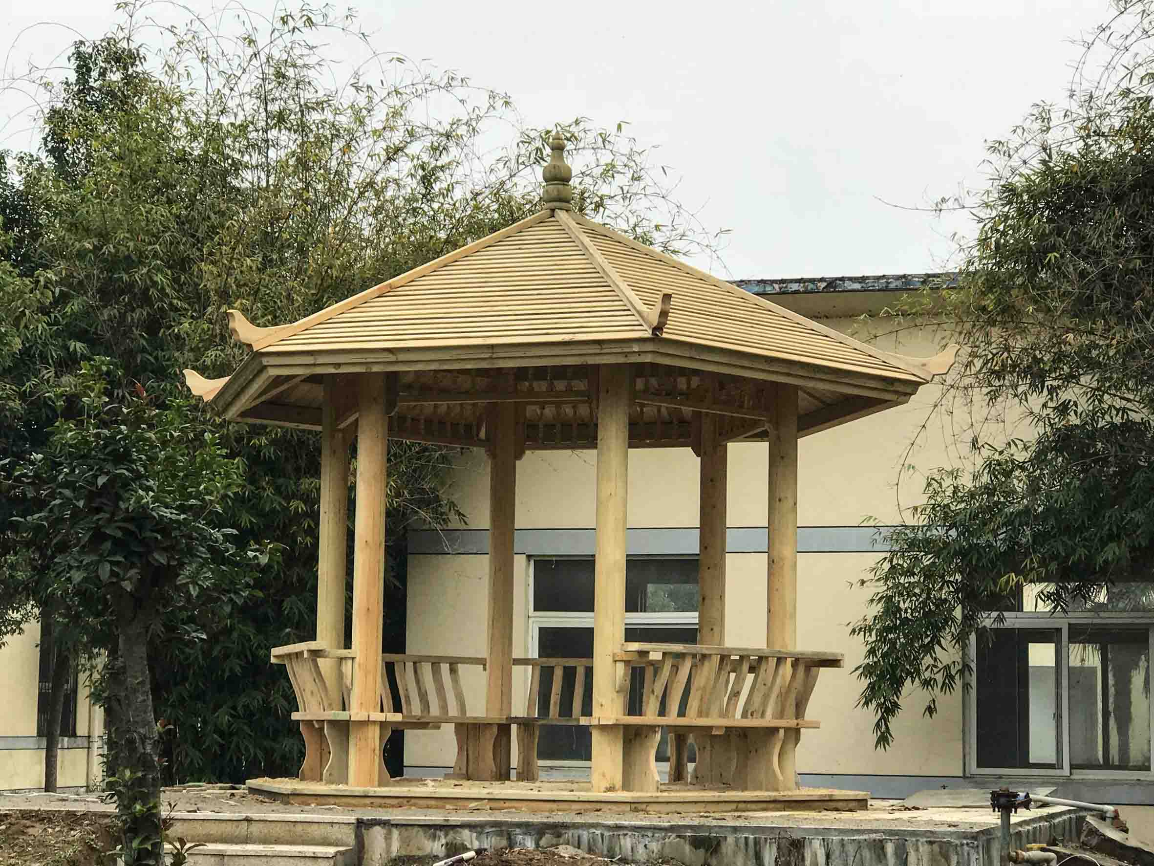 在保持原有景观基础上,增加了古色古香的木亭,富有野趣的石桌石凳,原有的喷泉假山也焕然一新。在绿化方面,增加了造型优美的树桩,苍翠欲滴的竹子等。改造后,整个景观大幅度提升。